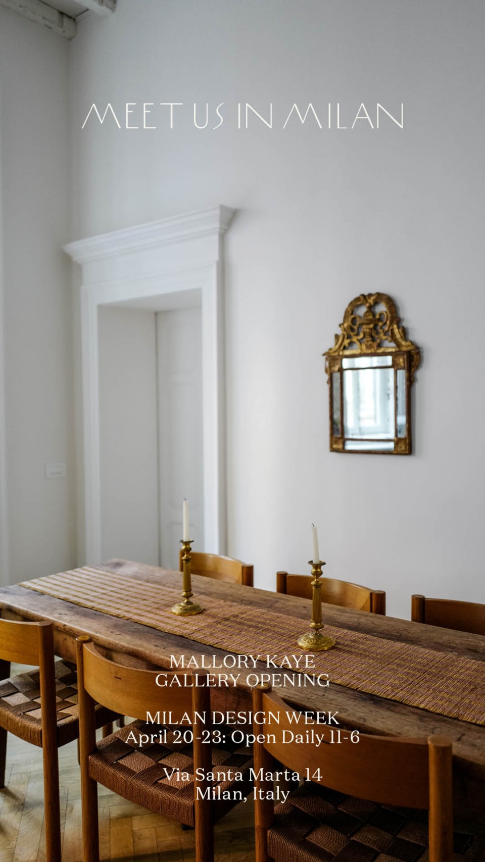 Mallory Kaye’s home gallery is opening for Milan Design Week in the historical and stylish Cinque Vie neighborhood. Mallory is an American interior designer and curator based in Milan, Italy. Having formerly lived in Los Angeles, California she brings a unique approach to her European clients.