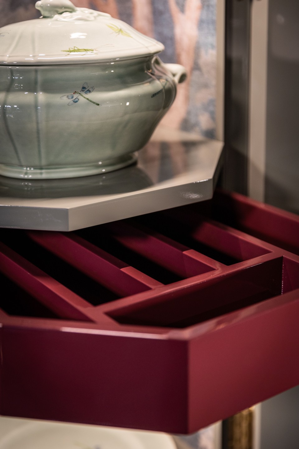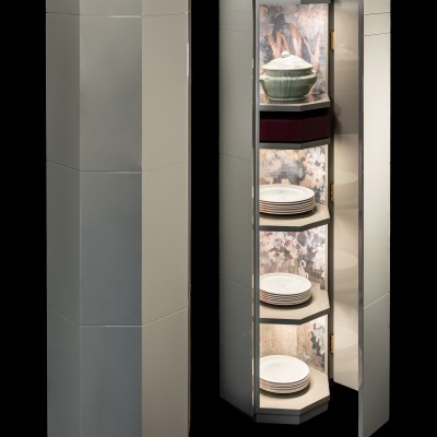 “The need for a self-standing octagonal piece of furniture has often arisen during the design of spaces for our customers, it arises from the need to contain something “precious”: tableware. We have repeatedly designed sideboards and buffets dedicated to a specific environment, but this time we thought of an object that is itself the protagonist of the environment and that stimulates the imagination regarding its contents".
