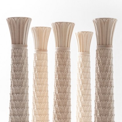 Pietrachiara torna alle 5VIE con le sue iconiche colonne Anne, presentate qui per la prima volta due anni fa. In tiglio massello con intaglio rifinito a mano, sono un esempio della maestria artigianale italiana. Vengono qui riproposte in versione contemporanea, con una finitura ultra pigmentata ispirata al blu di Yves Klein, che curiosamente si sposa con i dettagli del magnifico antico palazzo di via Cesare Correnti. Come nel Nouveau Réalisme, gli elementi si riuniscono sulla base della loro “singolarità collettiva”, stando insieme nonostante, o a causa, delle loro differenze. Un messaggio che oggi più che mai vogliamo enfatizzare.