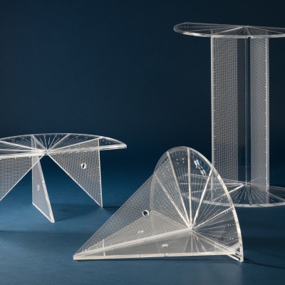Because of the transparency and lightness of the chosen material, acrylic plastic, the link between the parts enhances
