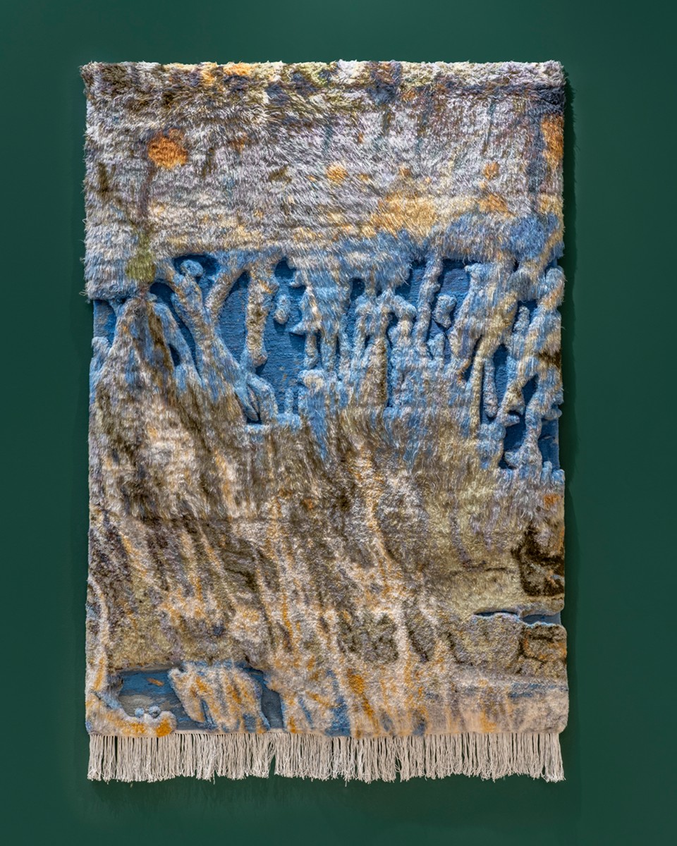 From the Elysium Series (2024–25) features handwoven carpets produced in collaboration with