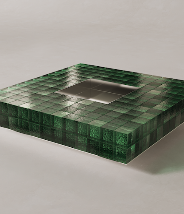 The series, customizable in color finishes as well as in its dimensions, includes five pieces: the Fumoir coffee table, featuring a multifunctional central basin, a side table with a mirrored steel tray, a minimalist console constructed from glass cubes, a dining table entirely clad in glass, and a floor lamp, available in three heights, evoking the shape of an ethereal tower. For Fuorisalone, the objects - except the dining table - will be displayed at the center of the space. Glass reflections create a play of light and color, transforming the installation into an immersive journey that guides visitors through the collection, module by module.