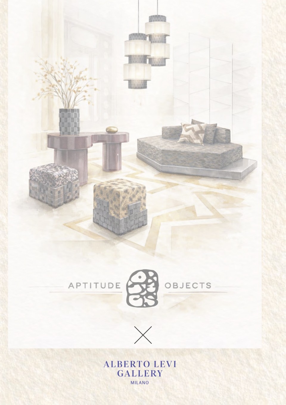 Presented by Alberto Levi Gallery during Salone del Mobile, the exhibition introduces a new rug collection designed by Aptitude Objects alongside curated selection of objects. Rooted in Levi’s expertise in textile craftsmanship, each piece is produced in two material interpretations — wool+cashmere, or abacá fibre — revealing how matter transforms perception while preserving form. The image remains constant; its presence evolves, generating radically different spatial and tactile realities.