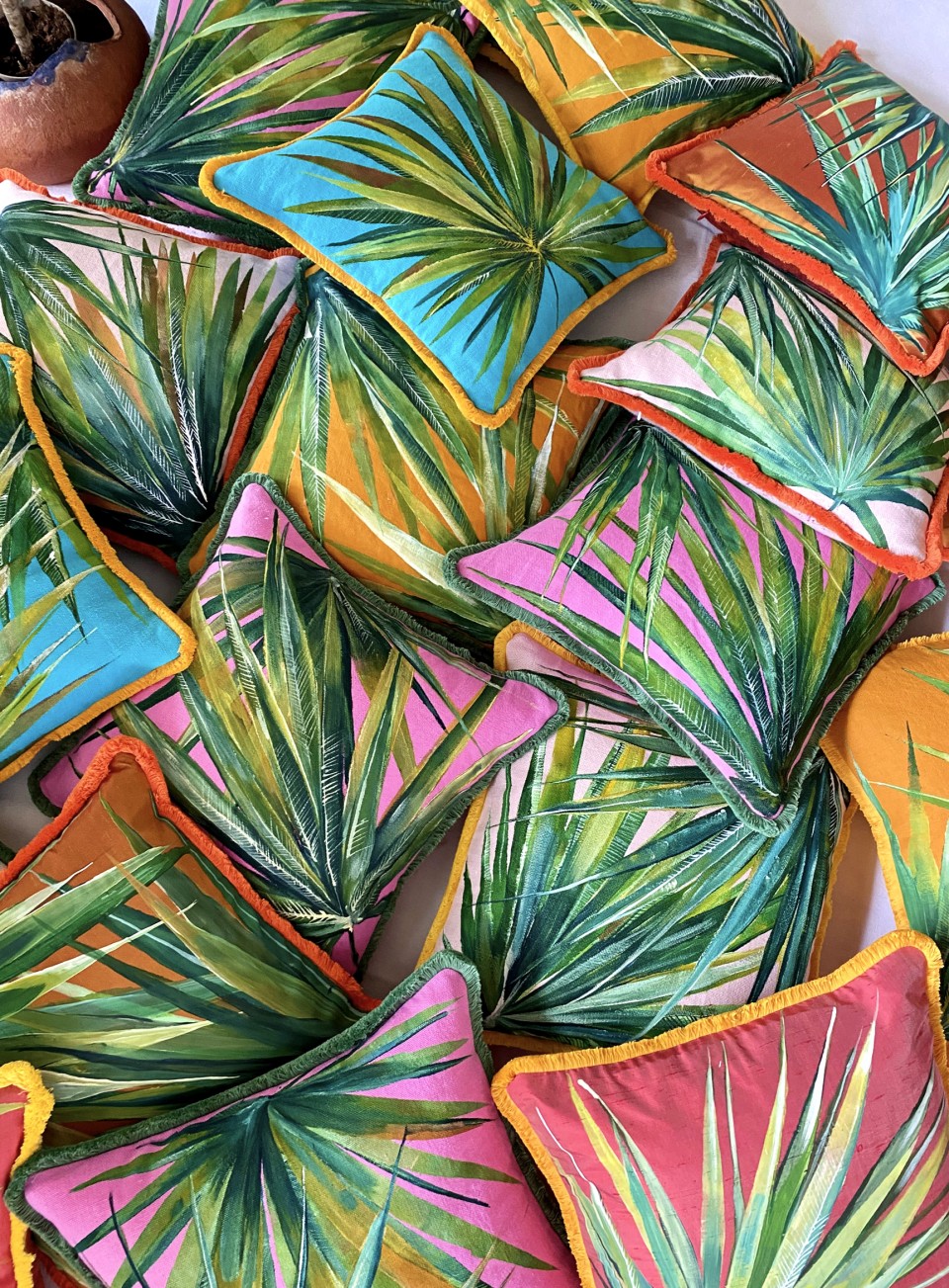 Chiara Grifantini presenta Animalier Metallico, una capsule collection di circa trenta cuscini interamente dipinti a mano, realizzati con una tecnica mista di pittura su tessuto e applicazione di foglio metallico a caldo. Ogni pezzo è unico e irripetibile.