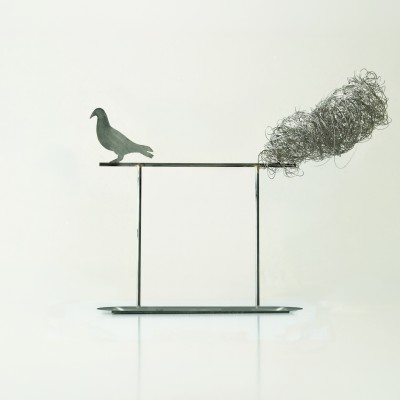 Nei disegni allora, quasi nascosti, appaiono frammenti di minuscole memorie, conchiglie abbandonate dal mare, vasi, foglie, colombe, angeli, e il cielo sembra popolarsi d’invisibile silenzio.
