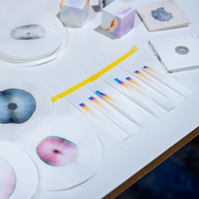 Questa installazione esplora In-Between Matter ̶ gli spazi sottili che le tecnologie analitiche di Shimadzu hanno cercato di rendere visibili.